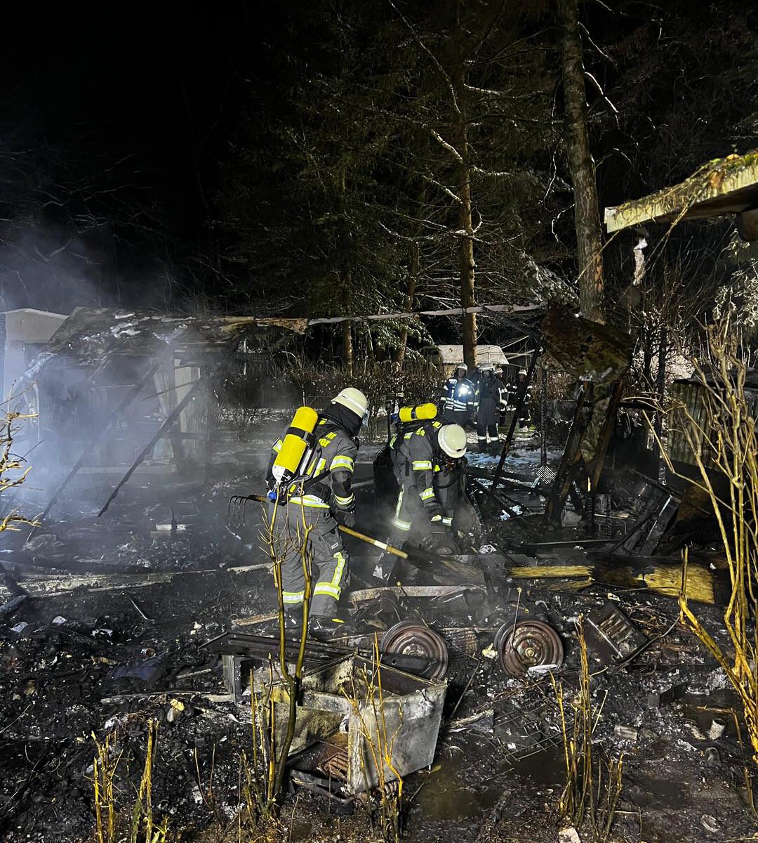 Besonders herausfordernd waren bei diesem Einsatz die winterlichen Wetterverhältnisse mit glatten Straßen, sowie die hohe Anzahl an Gasflaschen im und am Wohnwagen, die eine zusätzliche Gefahr darstellte.